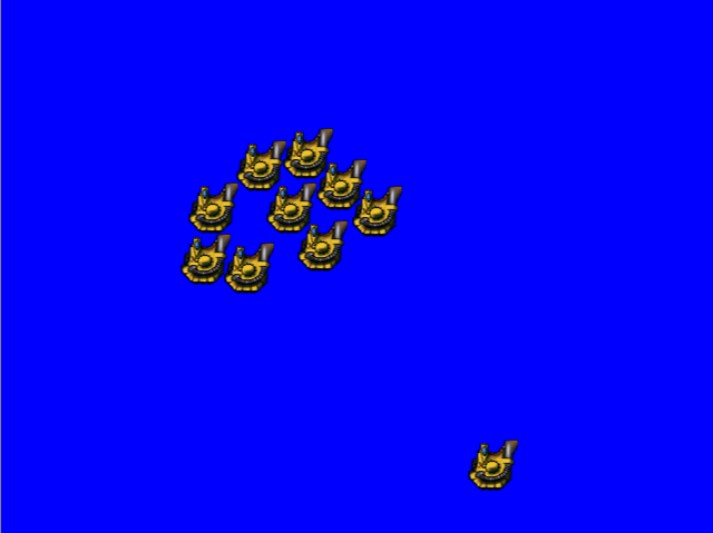 Testing the collision system. The player moves through a group of ships, pushing them away. Generally in the game it will be possible to do this without sustaining heavy damage. -gideon